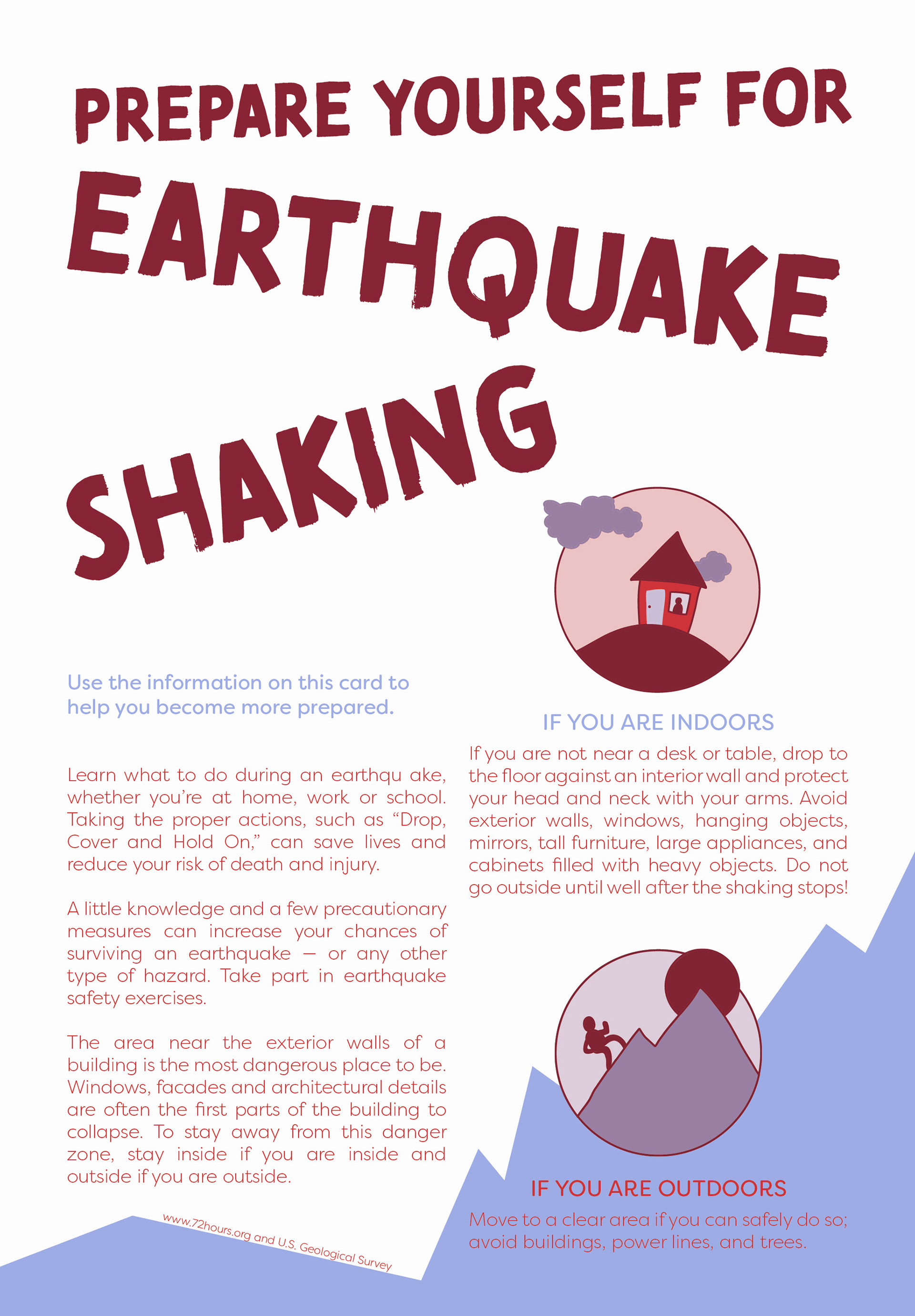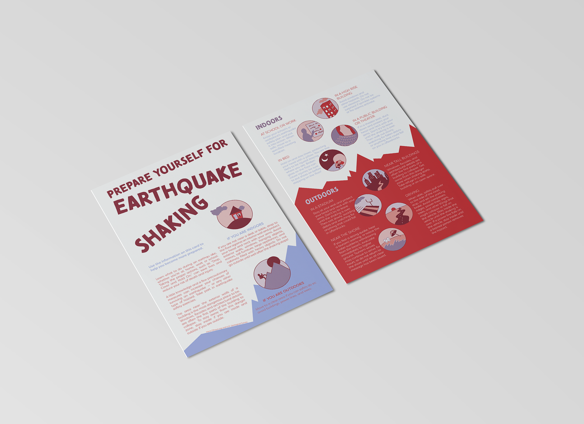 Suncup Studio created the graphics and designed the layout for this public safety info-card on earthquake protocol.
